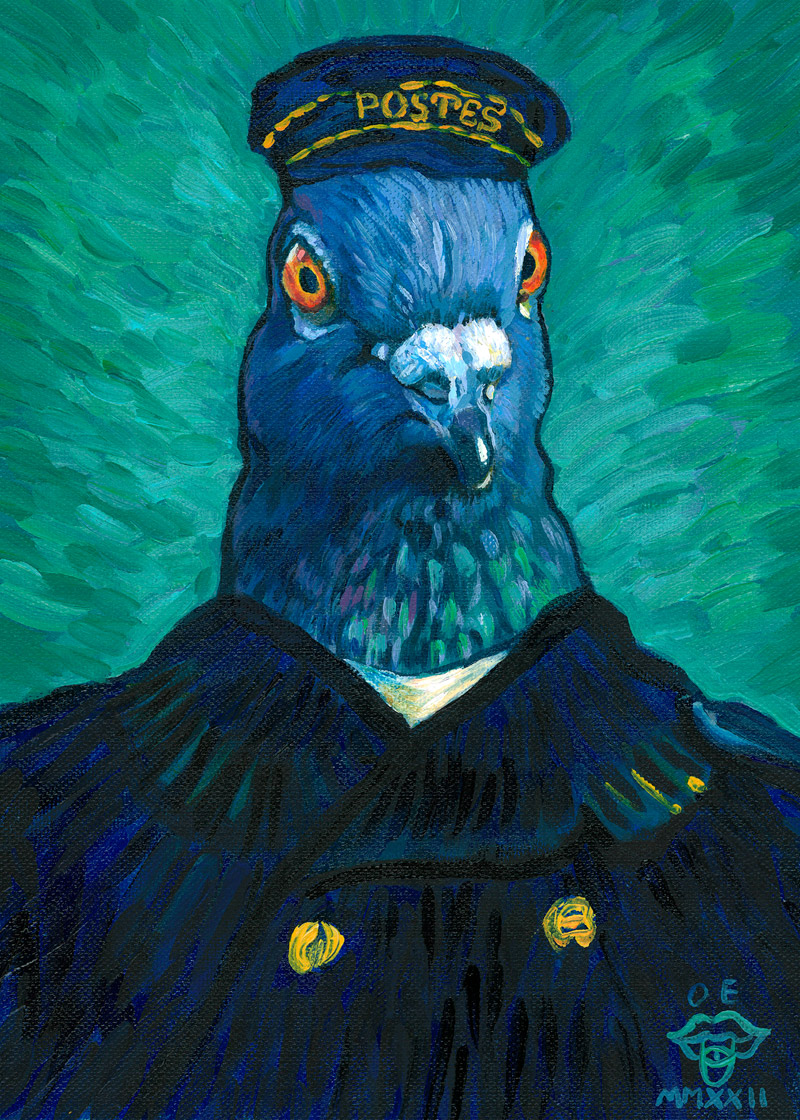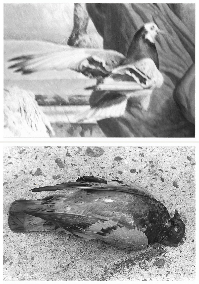 Die lebend aussehende Taube (oben) ist nur gemalt –