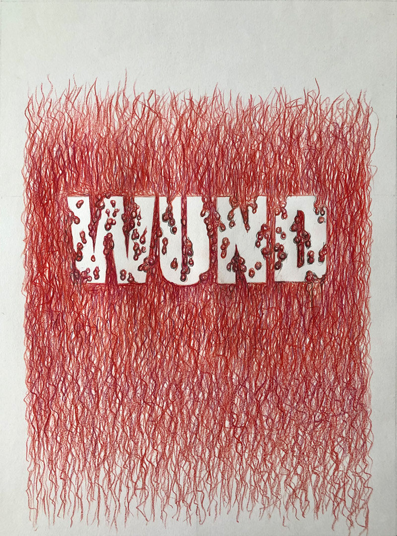 2022, 43 x 30 cm, Farbstift auf historischer Radierung.